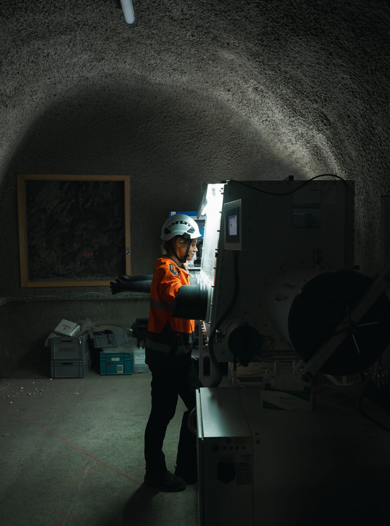 Die Annäherung an die hundert Prozent liegt in der Verantwortung von Irina Gaus. Die Belgierin arbeitet seit 18 Jahren bei der Nagra, unzählige Male ist sie schon hier in den Berg hineingefahren, in die absolute Stille, in das Stollengewirr, in dem man schnell die Orientierung zu verlieren droht. Dass es nicht immer so still ist wie heute, verraten Ohropax-Spender, die an klassische Kaugummimaschinen erinnern. Sie spucken farbige Gehörschütze aus, wenn man am Rädchen dreht. In Mont Terri forscht die halbe Welt an Themen rund um die Lagerung von radioaktiven Abfällen. Forscher:innen aus Japan nehmen dem Berg ebenso den Puls wie ihre Pendants aus Deutschland, den USA oder Kanada. Auf dem Weg zum Stollen der Nagra liegen Bohrkerne in Holzkisten verpackt zum Abtransport bereit, überall kommen Kabel aus dem Fels heraus, es gibt Fenster in den Berg: Holzrahmen, Plexiglas, ausnahmsweise keinen Spritzbeton. Die Nagra erforscht hier konkret, wie man ein Lager in Opalinus-Ton bauen kann, welche Maschinen und Techniken dafür überhaupt infrage kommen. Parallel dazu erforscht man weiterhin die Prozesse, die in einem Tiefenlager ablaufen werden.