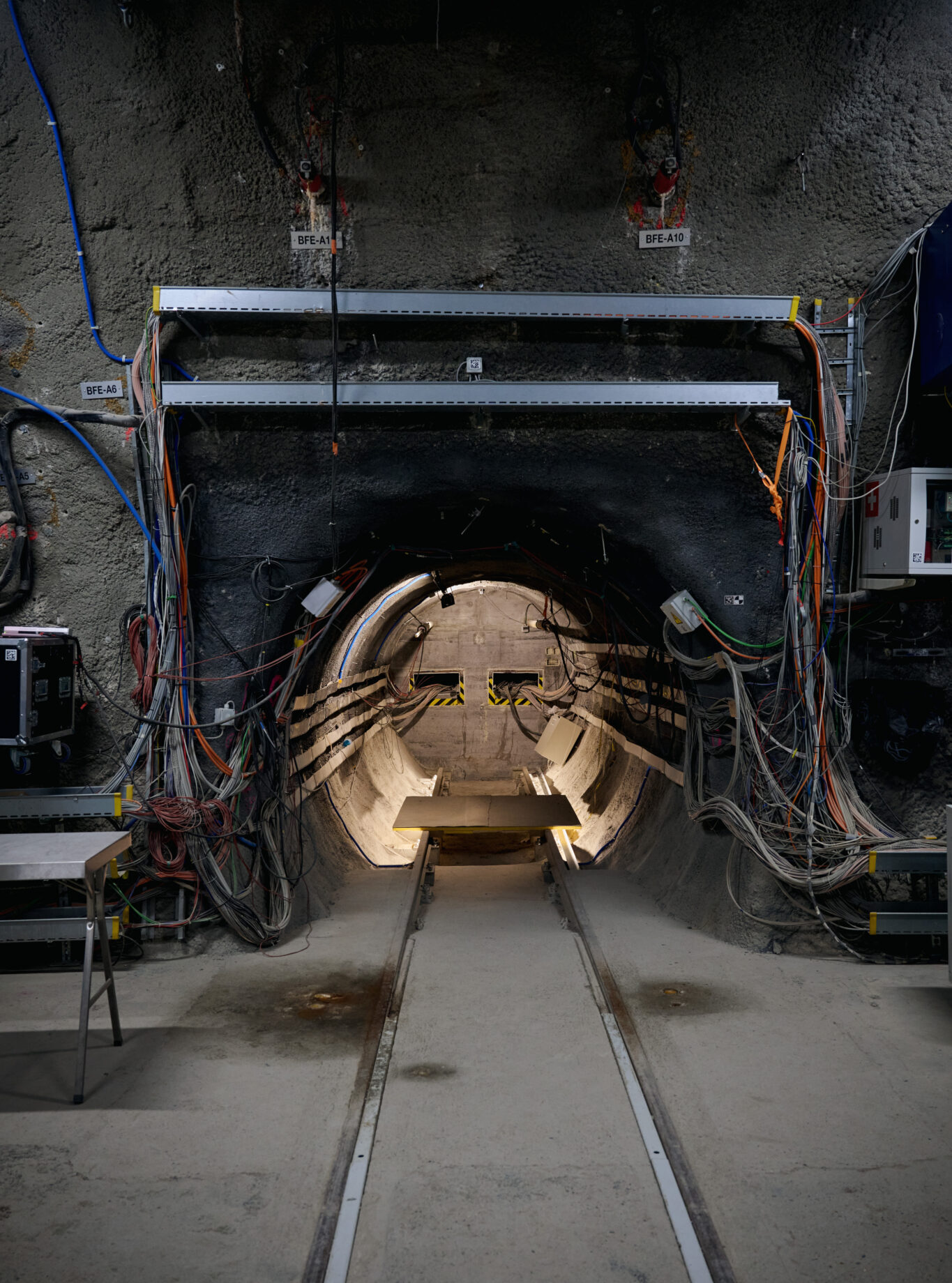 Die Schleuse, so scheint es, schrumpft die Menschen, die in den Berg wollen. Dafür reicht dieser kurze Moment, wenn sich das Tor hinter ihnen geschlossen hat und das vordere sich noch nicht zu öffnen begonnen hat. Kleiner weisser Skoda, riesiger grauer Tunnel. Dann der Ruck, mit dem sich das Tor vor dem Auto einen Spalt breit öffnet – und man fährt als Miniatur in den Berg hinein, ganz langsam. Irina Gaus war schon so oft da, dass sie ihre Schrumpfung nicht mehr wahrnimmt. Sie möge es, «der Welt da draussen» zu entfliehen, sagt sie, während sie das Auto durch die Einbahnen des Stollenlabyrinths steuert.